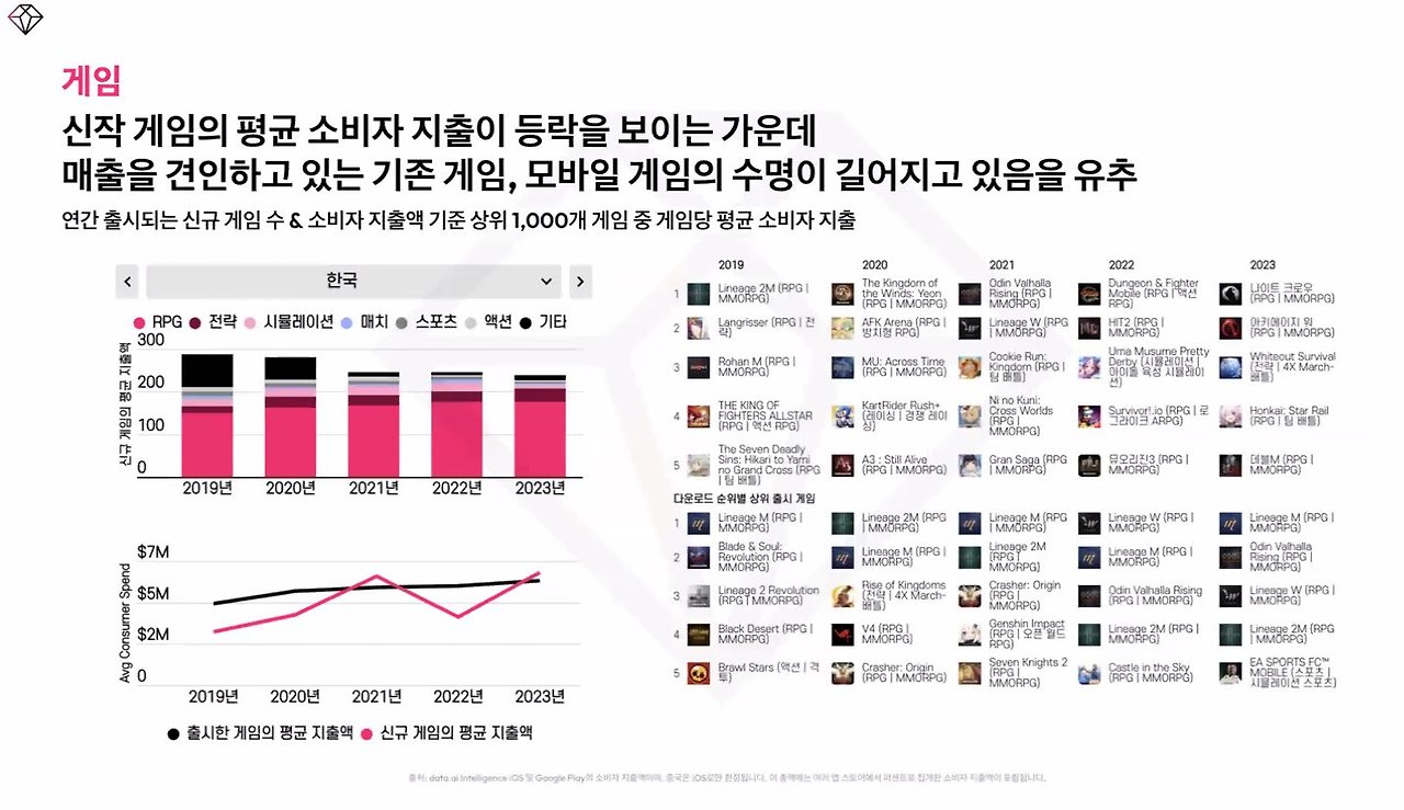 - 비 게임 서비스 지출 증가: 웹툰, OTT, 동영상 공유 서비스